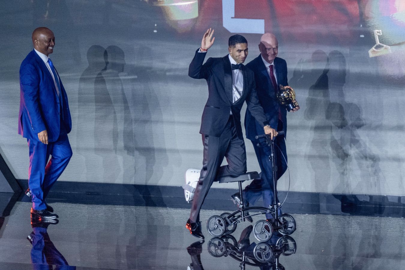Необычное появление Ашрафа Хакими на CAF Awards. Видео. Защитник «ПСЖ» лично забрал награду лучшему игроку года в Африке, несмотря на травму!