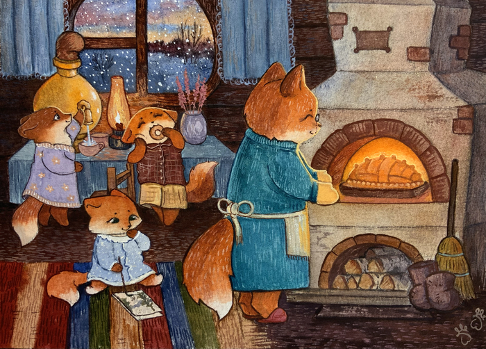 Уютный вечер. Немного переделала недавнюю открытку)