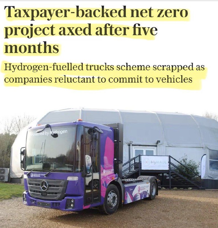 Водородные проекты рушатся по всему миру. На этой неделе завершился крахом проект водородных грузовиков британского правительства. Инициативу по внедрению грузовиков на юго-востоке Великобритании, которую финансировали за счёт налогоплательщиков, отменили всего через 5 месяцев после запуска. Проект HyHaul подразумевал создание водородных заправочных станций вдоль трасс и покупку 30 водородных грузовиков, которые доставляли бы товары на фабрики и в магазины. Но эта идея провалилась из-за того, что грузовые компании не захотели подписывать дорогие контракты и платить за них. В результате миллионы фунтов, потраченные налогоплательщиками, оказались утрачены. Это уже не первый случай провала замыслов по внедрению водорода. Среди других отменённых проектов: – H2Teesside – водородный завод BP, который должен был превращать природный газ в водород. Проект закрыли в этом месяце. – проект водородных автобусов в Ливерпуле. Из-за недостаточных поставок водорода для заправки автобусов, а также высоких эксплуатационных затрат, было решено преобразовать эти автобусы в электрические. В проект вложили 10 млн фунтов, половина из 20 закупленных автобусов дошли до эксплуатации. Всего было совершено 450 пассажирских поездок, но большая часть автобусов так и не вышла на маршрут. – проект водородных городов – правительственная инициатива, в рамках которой водород планировали использовать в коммунальном отоплении как замену природного газа. Проект также отменён. В стратегии 2021 года правительство прогнозировало, что водород обеспечит более трети энергетических потребностей Британии к 2050 году, но теперь его рассматривают как нишевое топливо. Также водородные проекты провалились в США и Германии. В немецком Котбусе 46 автобусов на водородном топливе простаивают уже почти год, и поедут не раньше осени следующего года. Причина – отсутствие заправочной станции. Каждый автобус, закупленный дефицитным бюджетом города, стоил 650 тыс. евро. Местный энергетический концерн LEAG сможет поставить электролизер для производства водорода из экологически чистой электроэнергии только в конце следующей осени. https://t.me/banksta/81722