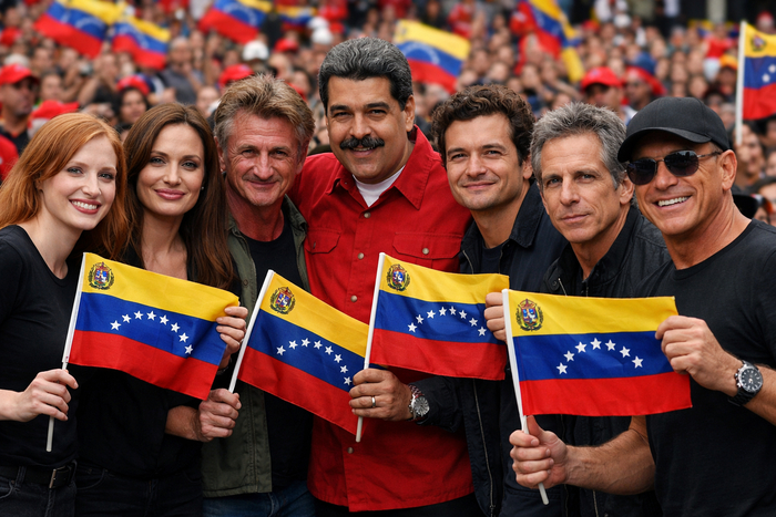 Где-то в параллельной реальности. Многие мировые знаменитости не побоялись приехать в Венесуэлу во время войны. Все для того, чтобы поддержать, рассказать всему миру правду о героическом сопротивлении венесуэльского народа. Актеры, режиссеры и сценаристы приезжают в Венесуэлу не только волонтерить и общаться с переселенцами, но и снимать фильмы. Джессика Честейн, Анджелина Джоли, Шон Пенн, Орландо Блум, Бен Стиллер и другие, безусловно, помогают в информационной борьбе с врагом. Такая поддержка мирового сообщества неоценима для ...
