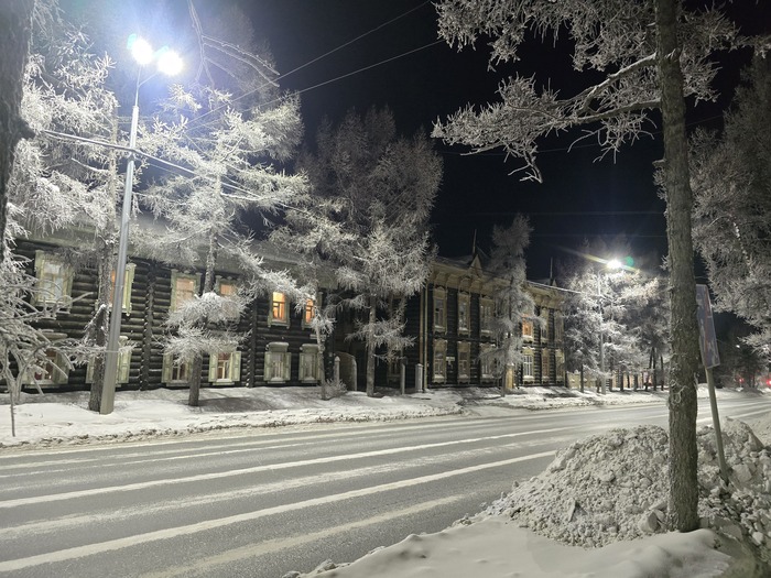 Ответ на пост «Жизнь Советского Томска в 1960-е годы. 20 раскрашенных фотографий». А сейчас в Томске мороз от 30 до 40 °С. Но в этом есть и свои плюсы. Утром был очень густой туман, а днём он замёрз на деревьях. Вот что я видел по пути с работы на Красноармейской.