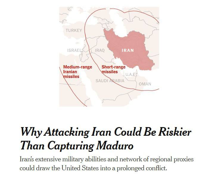 New York Times пишет о серьёзных проблемах для США в случае операции против Ирана, подчеркивая разницу в ситуации с Венесуэлой. «В то время как воздушное пространство Венесуэлы было относительно незащищенным, Иран обладает одним из крупнейших и наиболее разнообразных ракетных арсеналов на Ближнем Востоке, который включает дроны, противокорабельное оружие и баллистические ракеты средней дальности способны достичь американские базы на всем Ближнем Востоке», - пишет издание. NYT напоминает, что Иран управляет целой сетью военных групп на ближнем востоке, включающих йеменских хуситов и ливанскую "Хезболлу". Они могут попытаться нанести ответный удар по американским войскам и союзникам, создав сразу несколько фронтов. Издание приводит мнение различных экспертов, сомневающихся в успехе подобной операции. "В случае с Ираном нет дешевого, простого и чистого военного варианта. Существует реальный риск гибели американцев, что будет играть важную роль в расчетах Трампа в год выборов", - считает Али Вэаз из Международной кризисной группы по урегулированию конфликтов. "Стратегия Тегерана «заключается в быстрой эскалации и экспорте нестабильности на нескольких фронтах, чтобы издержки и страдания распределились между всеми", - заявил Санам Викаль, директор программы по ближнему востоку в британском исследовательском центре Chatham House. Кроме того, Иран в отличии от Венесуэлы обладает собственным производством дронов и ракет. Ранее о трудностях в операции США против Ирана писала и «Страна».