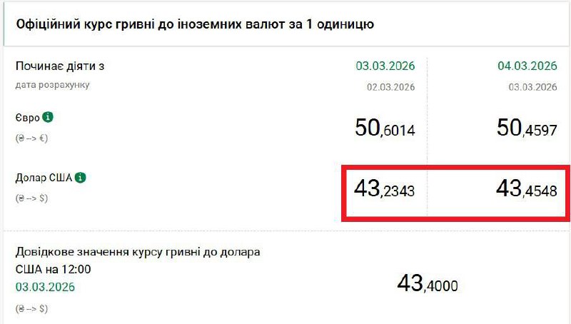Курс доллара к гривне взлетел на новый максимум. При чем здесь Иран? Нацбанк повысил курс доллара к гривне. Сегодня, 3 марта, регулятор поднял максимальный курс межбанка до 43,6250 грн/$ (минимальный — 43,35 грн/$), что выше вчерашнего 43,3 грн/$ и 43,1 грн/$ перед началом войны в Иране. А по итогам безналичных торгов НБУ поднял свой официальный курс гривна/доллар со вчерашних 43,2343 грн/$ до 43,4548 грн/$. 43,4548 грн/$ — новый исторический максимум в паре гривна/доллар, предыдущий на уровне 43,4130 грн/$ был зафиксирован 19 января 2026 года. Резко, сразу на 30 копеек, подскочил и наличный курс американской валюты для населения. Максимальный ценник на продаже налички в кассах банков после обеда пробил новый психологический уровень и достиг 44,10 грн/$ (МетаБанк), а средний на покупке/продаже оказался в рамках 43,12-43,70 грн/$. Самый высокий карточный курс продажи ставил государственный Сенс Банк — на 43,99 грн/$, и в этом сегменте средний диапазон вышел на 43,17-43,59 грн/$. Вся эта новая волна долларового подорожания имеет только одну причину — ручные действия Нацбанка по взвинчиванию курса гривна/доллар на межбанке. Без каких-либо реальных рыночных предпосылок на торгах американской валюты. Резкого роста спроса там не наблюдалось. Объем торгов на основной площадке Bloomberg составил лишь $223,3 млн, то есть даже ниже вчерашних $235,2 млн. НБУ уже взял за привычку поднимать цену доллара в моменты снижения на мировом рынке курса евро, то есть пары евро/доллар. Нацбанковцы называют это выравниванием и сбалансированием двух валютных пар по мере увеличения в Украине спроса на евровалюту. Именно это сегодня и произошло. После начала новой войны в Иране в конце прошлой неделе пара евро/доллар на мировом рынке просела с 1,18 до 1,1587. Существенное движение, которое эксперты связывают с перетеканием капиталов в американскую валюту. «Думаю, что никто не ожидал (и не знаю, рассматривали ли сценарии), что Иран будет атаковать все страны Персидского залива и даже втягивать Европу в противостояние. А значит, капитал из Персидского залива ищет убежища в долларе (ранее он концентрировался в основном в инвестфондах, вкладывающихся в недвижимость и бизнес). Плюс ценовой топливный шок, опасный для Европы и Азии и относительно нестрашный для Штатов, так как США сами являются экспортером энергоносителей», - прокомментировал ситуацию финансовый аналитик Андрей Шевчишин. Благодаря снижению на мировом рынке официальный евро в Украине сегодня подешевел со вчерашних 50,6014 грн/€ до 50,4597 грн/€. При этом средние наличные курсы на продаже зафиксировались 50-35-50,99 грн/€, минимальный на 50,70 грн/€, а максимальный на 51,30 грн/€. То есть цены далеки от пика в 52 грн/€, который достигался в конце зимы. Также как в сегменте карт, где средние значения находятся на 50,30-51 грн/€, а максимальное — на 51,40 грн/€. Эксперты не исключают дальнейшее удешевление евро на фоне иранской войны. «В паре евро/доллар есть потенциал к движению в область где-то 1,15-1,155, пока слежу за этими уровнями. Хотя сегодня евро и провалился, но все же пытается стабилизироваться на 1,16», — отметил «Стране» Андрей Шевчишин. Он также рассчитал влияние мирового курсового движения на нашу гривну: «Нацбанк судя по ситуации будет действовать приблизительно в такой пропорции: 40% давления на евро, 60% подъема доллара. То есть, например, мировой курс евро/доллар упал на 1,6%, это знач