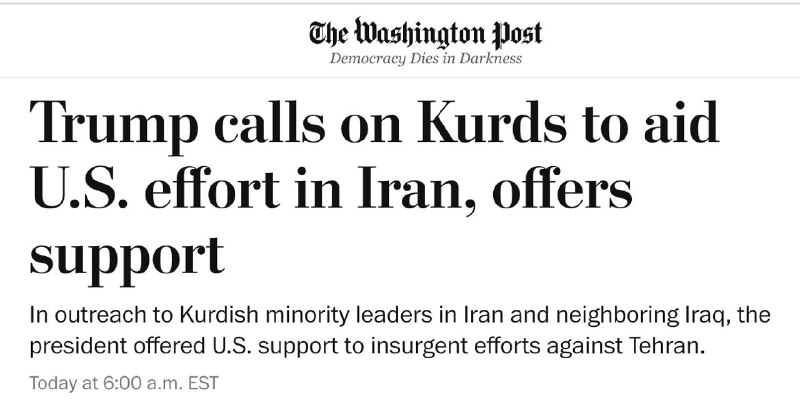 Курды, пишут западные СМИ, ещё не решили, поддерживать ли нападение США на Иран. Лидер Курдской демократической партии Масуд Барзани на просьбу Трампа вторгнуться в Иран ответил, что «дело не в том, у кого больше активных вооруженных формирований, а в том, у кого больше поддержки изнутри», сообщает The Washington Post со ссылкой на источники. «Американская просьба к иракским курдам состоит в том, чтобы открыть путь и не препятствовать» иранским курдским группам, мобилизующимся в Ираке, «а также предоставить логистическую поддержку», — сказал высокопоставленный чиновник Патриотического союза Курдистана. Трамп в ходе переговоров с лидерами курдского меньшинства в Иране и соседнем Ираке предложил «широкую воздушную поддержку со стороны США» и другую помощь антирежимным иранским курдам для захвата части западного Ирана. «Трамп был ясен в своем звонке. Он сказал нам, что курды должны выбрать сторону в этой битве — либо с Америкой и Израилем, либо с Ираном», — сказал источник про звонок лидеру ПСК Бафелю Талабани. Ранее Иран заявил о попытке наземного вторжения со стороны Ирака. Сайт "Страна" | X/Twitter | Прислать новость/фото/видео | Реклама на канале | Помощь