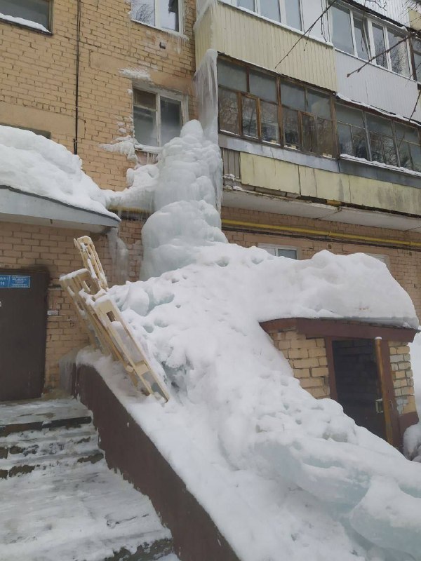 Во дворе школы №11, у одного из подъездов, появилась впечатляющая ледяная композиция.