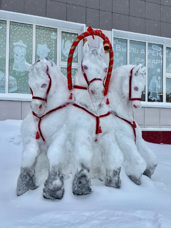 Снежные шедевры около школы №8 на Берша