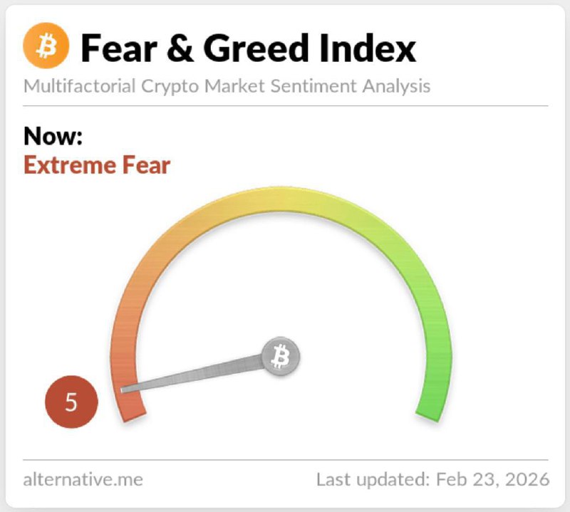 Индекс страха и жадности на крипторынке снизился до 5/100