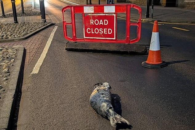 В Англии полицейским пришлось перекрыть дорогу из-за морского котика, заснувшего на проезжей части