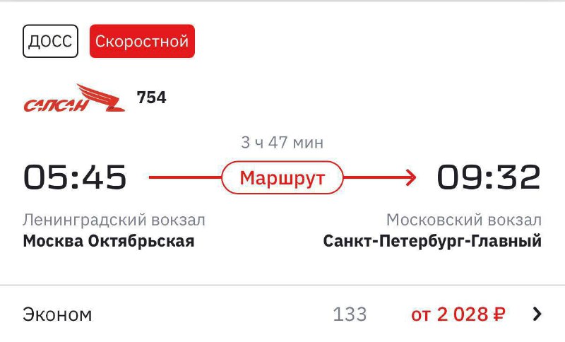Уехать из Москвы в Петербург на скоростном поезде можно будет по цене от 1200 рублей — РЖД временно снизили цены на билеты. Эконом-билет на «Сапсан» можно купить за 2028 рублей до конца февраля, сидячий билет на «Аврору» — за 1200 рублей до конца апреля.