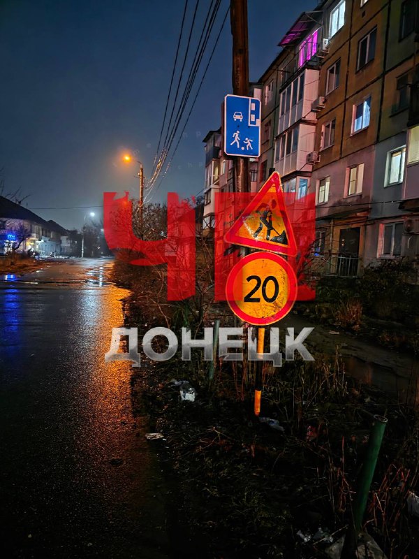 в Макеевке на Западной поставили дорожные знаки, будут делать новую дорогу,освещение и бардюры с пешеходными дорожками