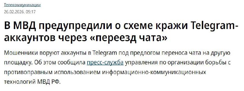 Новая угроза: мошенники наживаются на проблемах Telegram Пользователи сталкиваются с задержками и сбоями в работе популярного мессенджера, чем активно пользуются злоумышленники. Под предлогом технических неполадок они рассылают фальшивые уведомления с просьбой перейти в другие ресурсы. Не попадайтесь в руки злоумышленников и подписывайтесь на наш канал в MАХ: https://max.ru/orel_smi. Читайте нас в MAX Подписаться | Прислать новость