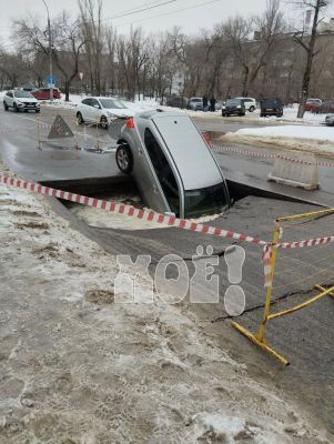 Машина провалилась в яму на улице в Воронеже