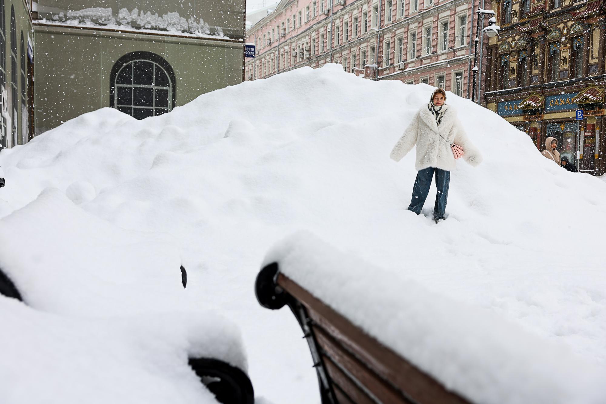 Путеводитель по снежным горкам: прошлись по Москве с живой «линейкой» и оценили высоту сугробов после суточного рекорда