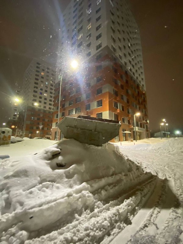 Коммунальщики в Подмосковье привезли пустой бак во двор и поставили его на двухметровый сугроб.