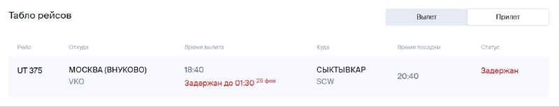 Самолёты из Москвы не вылетают в Коми: рейсы отменены и перенесены
