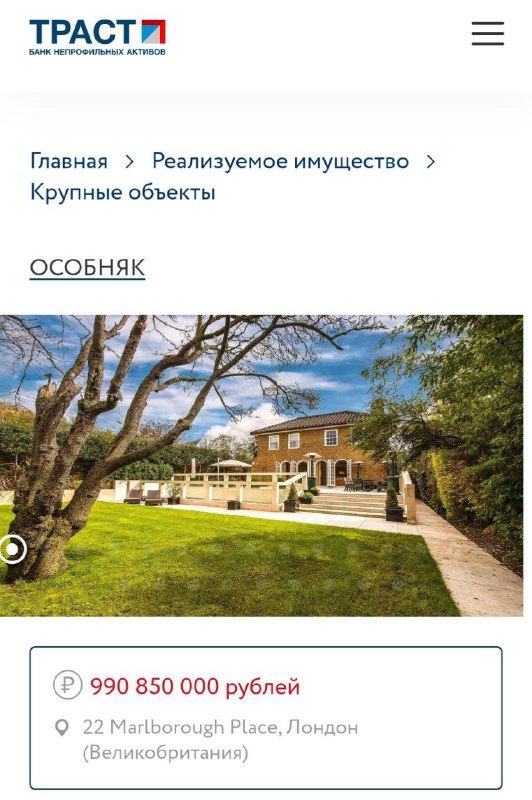 Банк «Траст» выставил на продажу особняк площадью 600 кв.