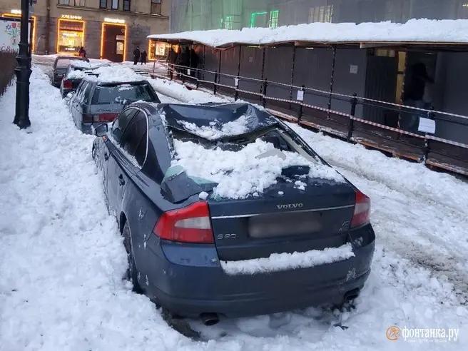 Берегитесь. КГИОП объяснил, почему подрядчик не ответит за разбитые снегом машины