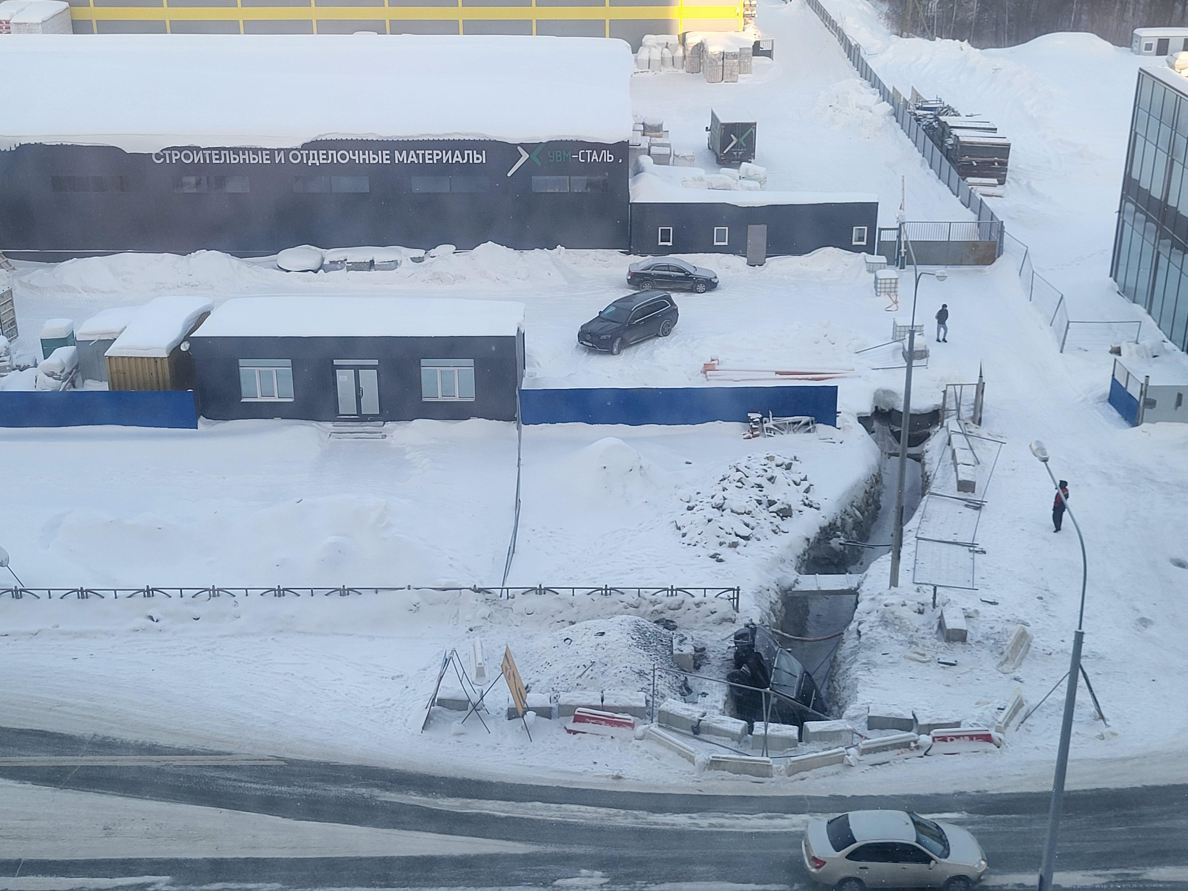 — Канаву вырыли на проезжей части около двух недель назад. Только на наших глазах уже произошли три ДТП! Сегодня в яму провалился автомобиль, стоит носом вверх! Надеюсь, все живы. Если ты едешь 60 км/ч ночью — ты не успеешь ничего сделать. Это безобразие! — говорит читательница @e1_news.