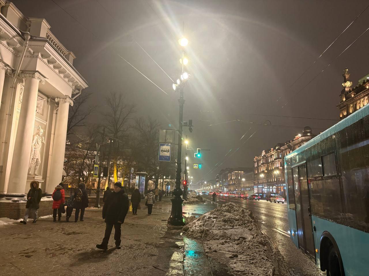 В Петербурге из-за потепления образовались наледь и огромные лужи