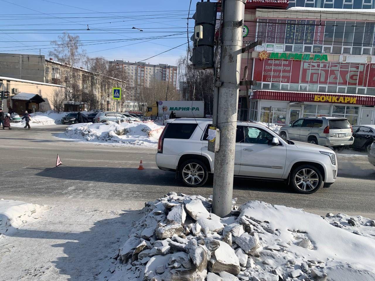 В Новосибирске водитель «Кадиллака» сбил подростка на пешеходном переходе — кадры с места аварии