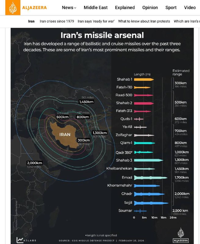 Дальность ракет Ирана, — Al Jazeera.