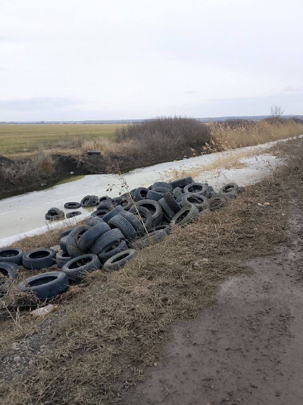 В Аксайском районе на берегу канала обнаружили свалку шин