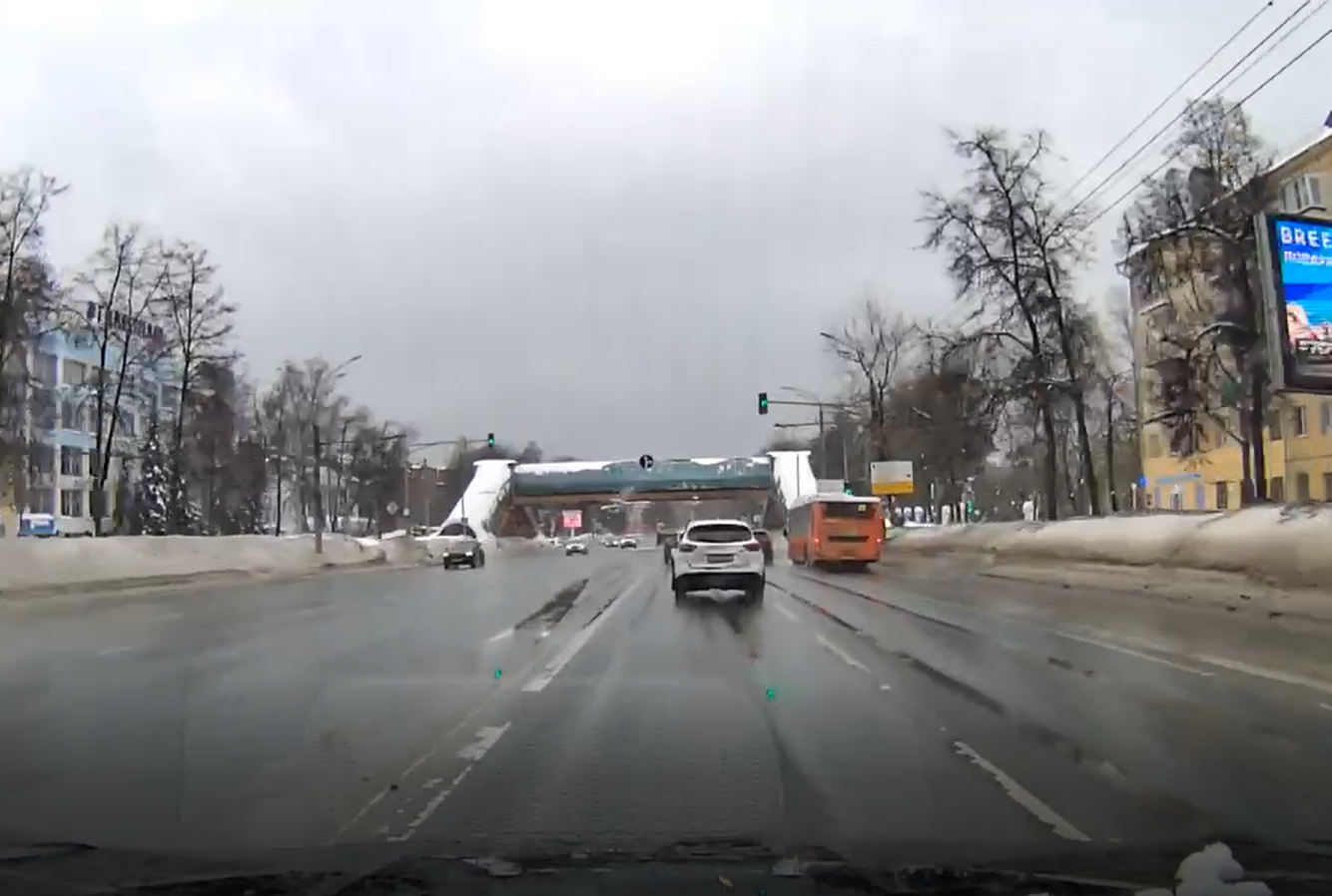 Нам пишут: «На проспекте Гагарина с крыши наземного перехода упала глыба льда прямо на лобовое стекло машины. Будьте осторожны!».
