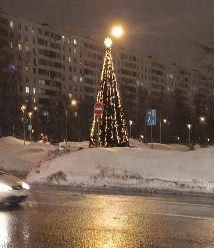 На одной из улиц Москвы заметили новогоднюю ёлку.