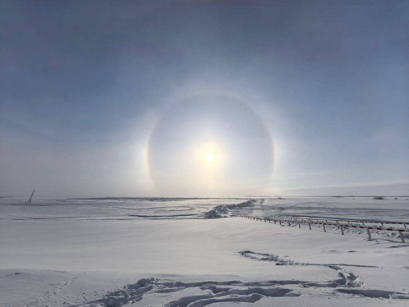 Солнечное гало озарило небо над Салехардом в первый день весны.