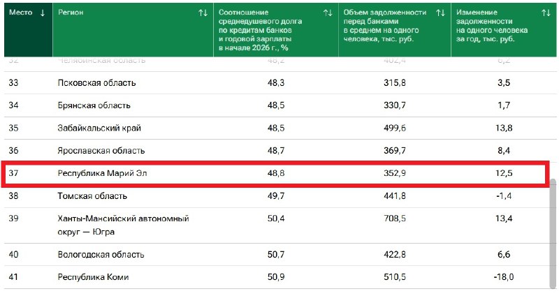 Каждый работающий житель Марий Эл должен банкам в среднем 353 тысячи рублей (48% от годовой зарплаты).