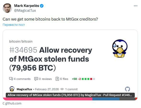 Бывший CEO Mt. Gox Марк Карпелес предложил внести изменения в код Bitcoin Core, чтобы вернуть 79 956 BTC, украденных еще в 2011 году. Речь идет примерно о более чем $5 млрд в биткоине, которые остаются неподвижными уже более 15 лет. Can we get some bitcoins back to MtGox creditors?https://t.co/Z7rymy1vuS — Mark Karpelès (@MagicalTux) February 27, […]