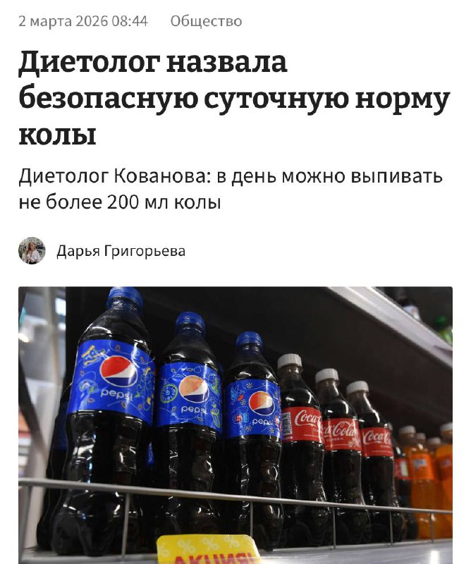 Только 200 миллилитров колы в день можно выпивать обычному человеку — врачи.