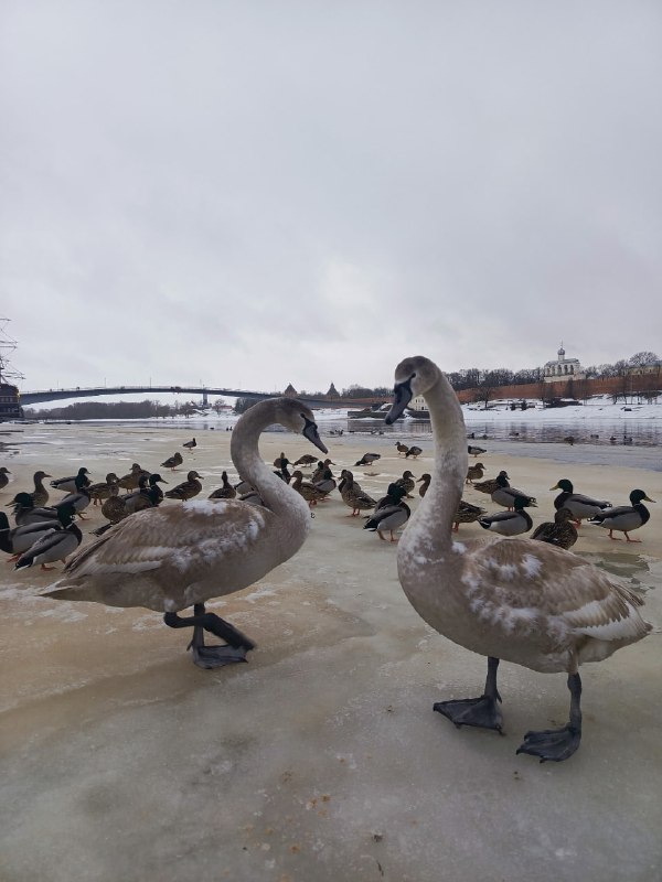 Дмитрий Графов успокоил новгородцев по поводу травмированного лебедя Ранее в СМИ со ссылкой на подписчицу сообщалось, что на Волхове один из лебедей якобы пострадал от собаки: у птицы «сломана лапа», она «сидит на льду и не может ни плавать, ни ходить». Председатель комитета охотничьего хозяйства и рыболовства Новгородской области пояснил, что лебеди благополучно кормятся. По его словам, одна птица действительно прихрамывает на левую ногу, однако, судя по визуальному осмотру, травма старая — более месяца. При этом лебедь хорошо держится на воде и находится в нормальной упитанности. Подписаться | Предложить новость