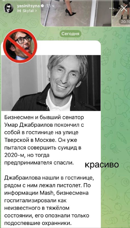 Бывшая Павла Табакова, актриса Софья Синицына сочла, что самоубийство Умара Джабраилова - это «красиво».