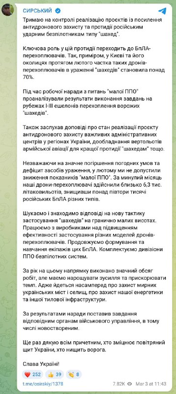 Россия стала применять «Шахеды» на предельно малых высотах, сообщил главком Сырский.