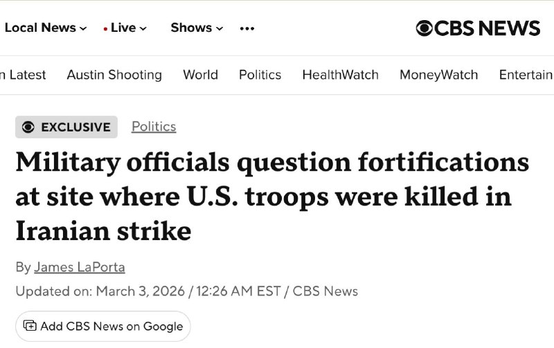 Все шесть погибших американских военных были убитых в результате удара иранского дрона по тактическому оперативному центру в порту Шуайба в Кувейте, сообщает CBS News.