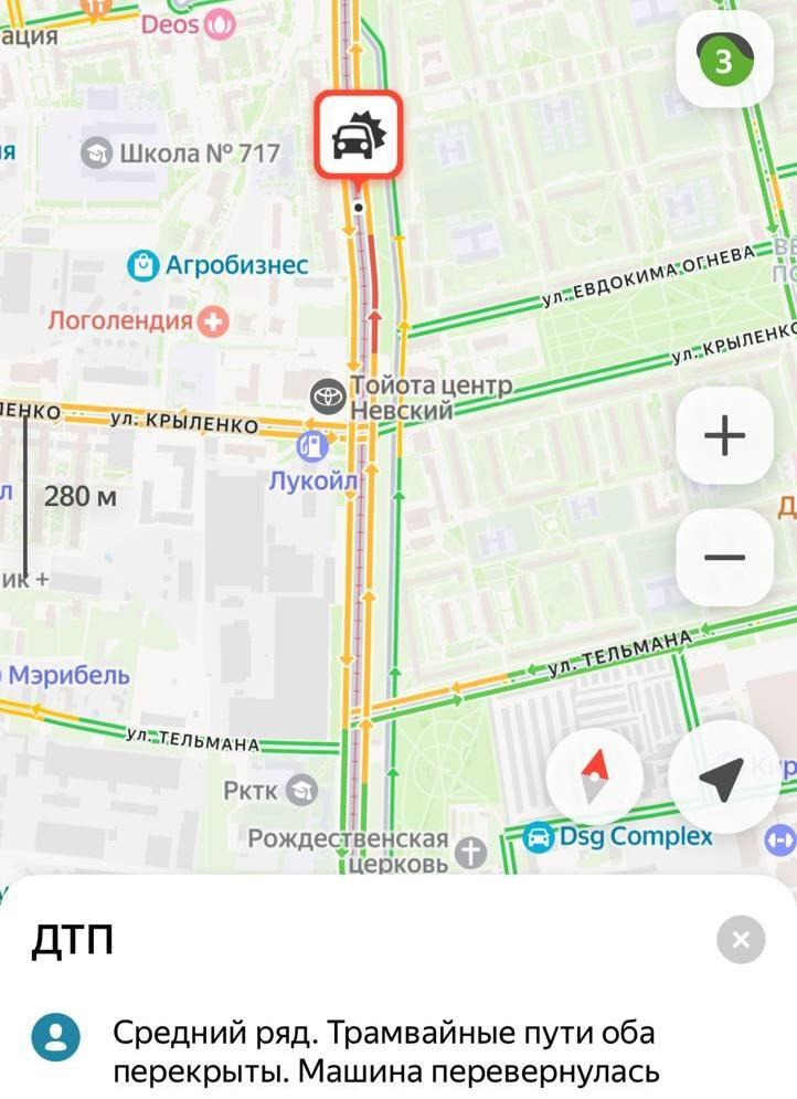 Перевернутый автомобиль перекрыл проезд трамваям в Невском районе
