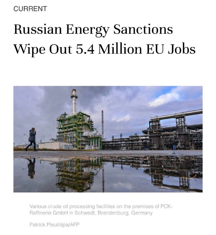 Санкции против России уничтожили 5,4 млн рабочих мест в Европе.