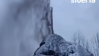 В Новокузнецке мощный фонтан «нефти» пробился прямо из снега