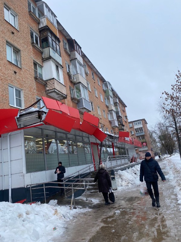 Сегодня глыба снега упала с крыши.