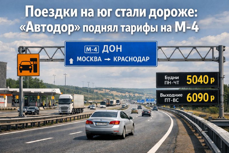 Поездки на юг стали дороже: «Автодор» поднял тарифы на М-4. Проезд по трассе «Дон» проиндексирован в среднем на 12,7%. Новые цены для легковых авто (маршрут Москва — Краснодар): • Будни (пн-чт) — 5 040руб (+430руб к прошлому году) • Выходные (пт-вс) — 6 090 руб (+890 руб к прошлому году) Почему цены выросли? Дорожники ссылаются на инфляцию и удорожание материалов для ремонта. Несмотря на рост, цена за 1 км всё еще держится в районе 4–5руб, что не превышает гослимит. Как сэкономить? Транспондер всё еще остается самым выгодным вариантом. С максимальной скидкой в 15% путь до Краснодара обойдется в 4 284 руб.
