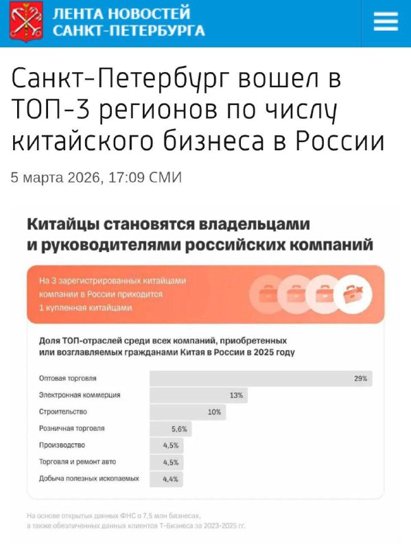 🇨🇳Санкт-Петербург вошел в топ-3 регионов по числу китайского бизнеса в России, — исследование Т-Бизнеса.