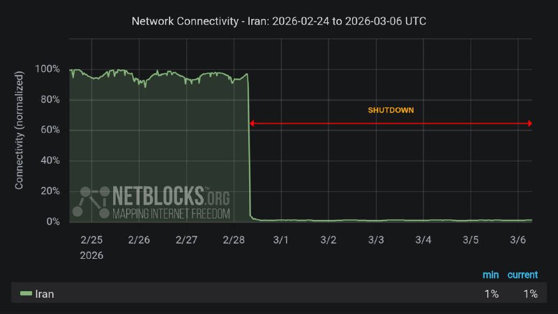90 млн человек без связи. Отключение интернета в Иране длится уже более 144 часов — В Иране уже более 144 часов почти полностью отсутствует доступ в интернет, о чем сообщает международная служба мониторинга NetBlocks. По данным статистики, Иран остается в цифровой темноте после шести полных дней отключения интернета, уровень подключения составляет 1% на отметке 144 часа. Тем временем режим продолжает продвигать свою повестку дня через сети, включенные в «белый список», и развивает медиа-активы внутри страны и за рубежом. NetBlocks По данным организации, уровень подключения к сети составляет всего 1% от обычного, при этом около 90 миллионов человек лишены связи с внешним миром. Изображение Grok В январе аналогичное отключение длилось несколько дней, что затрудняло работу СМИ и коммуникацию граждан с внешним миром.
