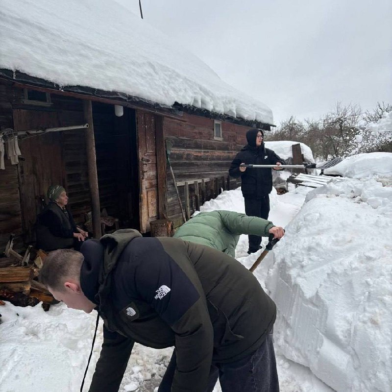 В Торжке студенты местного колледжа помогли одинокой пенсионерке в борьбе со снегом на участке.