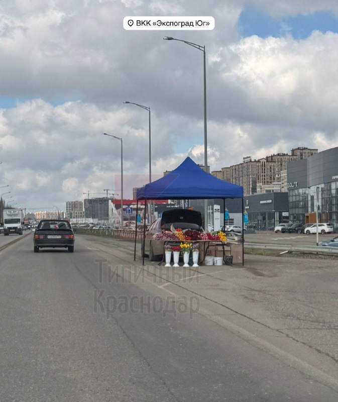 Выглядит безопасно: палатка с цветами появилась прямо на трассе около Экспоград-Юг.