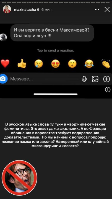 Наташ Максимов собрался засудить Ренату Литвинову, которая написала, что он вор и лгун.