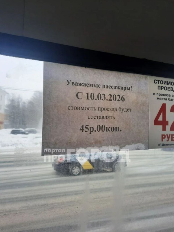 Объявление о повышении платы за проезд до 45 рублей увидели сегодня пассажиры автобуса 18.