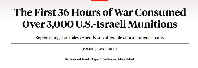 Замена американских радаров, пораженных в ходе ударов Ирана, обойдется в более миллиард и займет годы. Об этом пишет Foreign Policy, анализируя стоимость уничтоженного американского оборудования. Радары AN/FPS-132 изготавливаются и поставляются в течении 5-8 лет при стоимости в 1.1 млрд. долларов, а AN/TPS-59 могут быть заменены в течении двух лет, и стоят 50-75 миллионов. При этом, производство компонентов для этих радаров зависит от галлия, 98% которого производится в Китае. Проблемой является так же и количество боеприпасов, расходуемых США и Израилем для ударов по Ирану. "За первые 36 часов американо-израильской кампании против Ирана было израсходовано более 3000 высокоточных боеприпасов и перехватчиков, что выявило критическую уязвимость в цепочке поставок", - пишет FP.