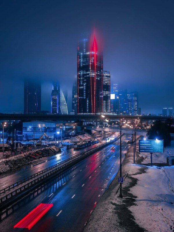 Окутанные вечерним туманом небоскрёбы Сити.
