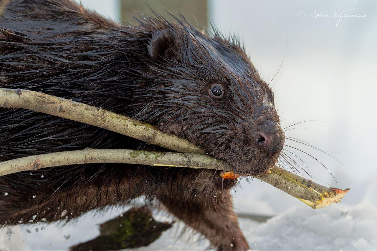 Бобр устроил шоу в Петербурге прямо на тротуаре. У него лапка